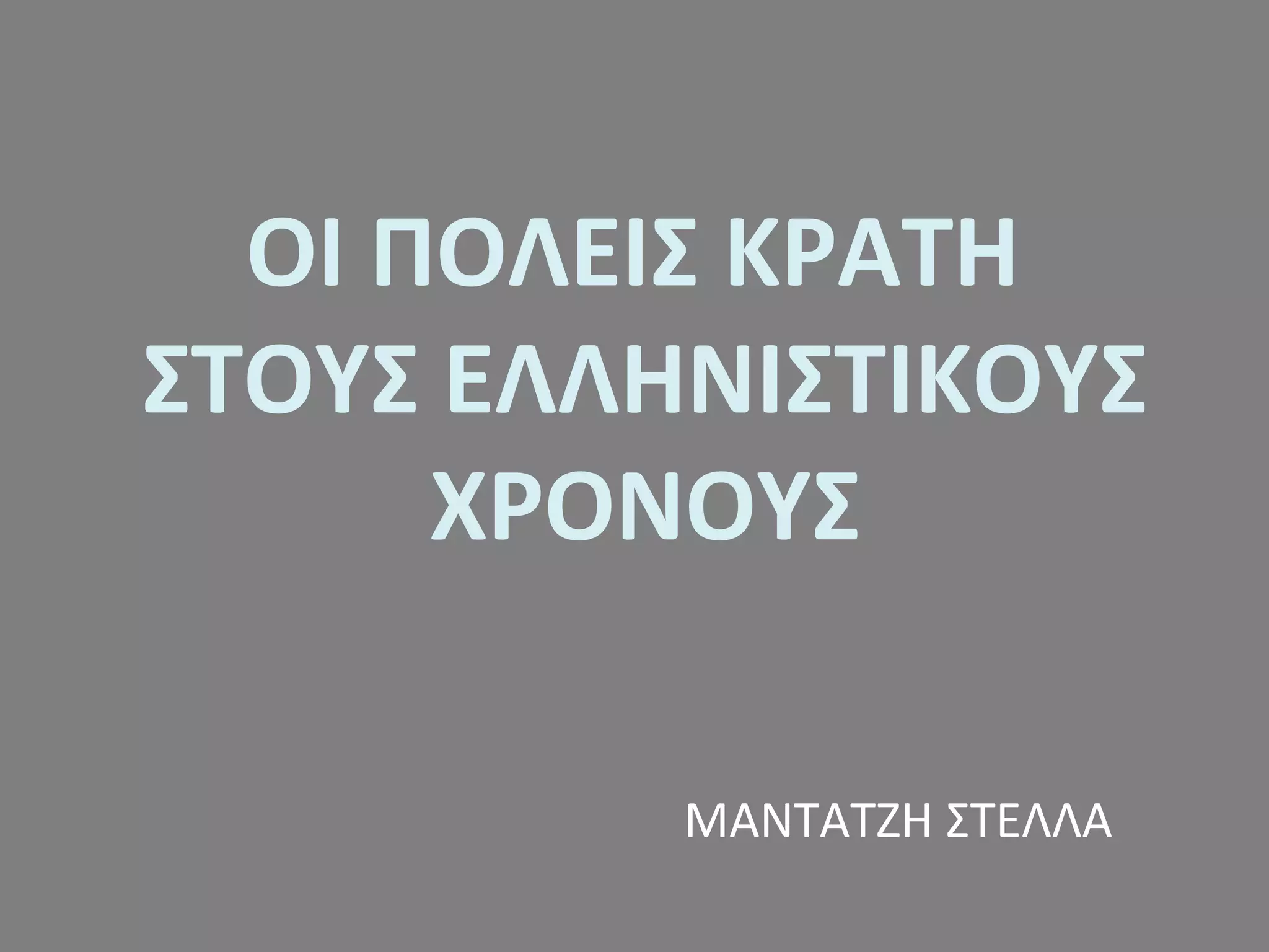 ΣΤΟΥΣΕΛΛΗΝΙΣΤΙΚΟΥΣ ΧΡΟΝΟΥΣ