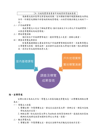 本計畫旨在透過特殊地質調查與志工培訓,提高北投地區的遊覽及教育價值,促進觀光發展。主要內容包括基礎課程、戶外實察及導覽演練,並計畫舉行成果發表會。預期將提升地質導覽人員的解說能力,並增進對北投特殊地質環境的認識。