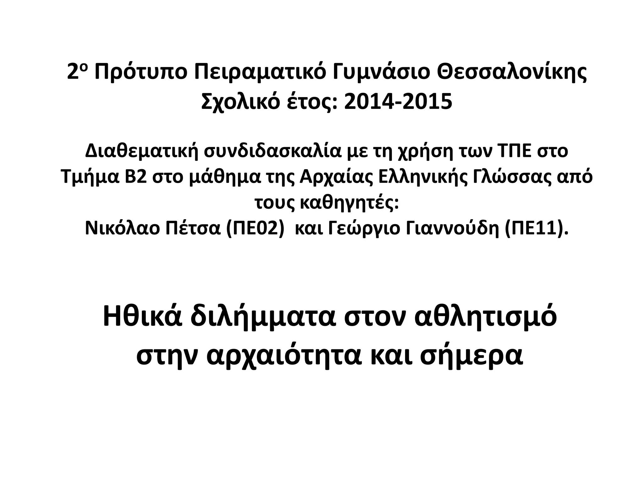 ηθικά διλήμματα στον αθλητισμό στην αρχαιότητα και σήμερα