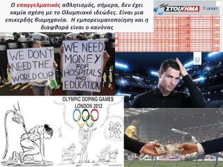 • Ο αθλητής μετατρέπεται σε κινητή διαφήμιση, επειδή οι υλιστικές αξίες
