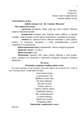 Обладнання: малюнки дітей «День Святого Миколая у моїй родині»,