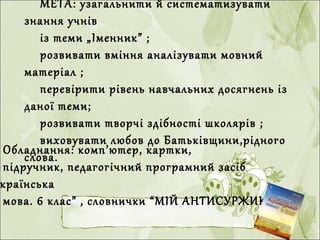 мова. 6 клас” , словнички “МІЙ АНТИСУРЖИК”.