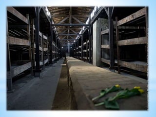 Документ описывает концентрационный лагерь Аушвиц, ставший символом Холокоста, в котором погибло более миллиона людей, в основном евреев. В нем происходили массовые убийства, принудительные работы и медицинские эксперименты, проводимые на заключенных. Лагерь был освобожден советскими войсками 27 января 1945 года, найдя около 7,5 тысяч выживших узников.
