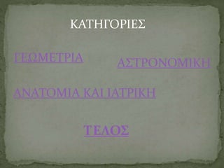 γνώσεις των Αιγυπτίων, όπως ακριβώς και στην ελληνική και