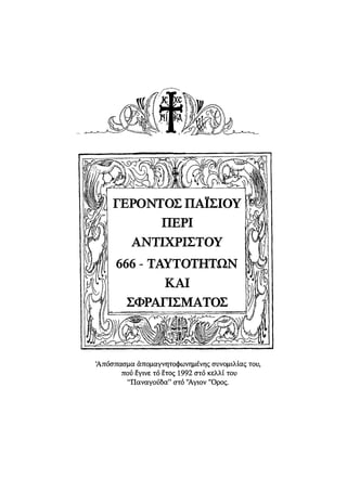 ΚΑΤΑ ΤΟΥ «666» ΣΤΙΣ ΤΑΥΤΟΤΗΤΕΣ κλπ. Από τον γ. Παίσιο τον Αγιορείτη. Παρόλο που