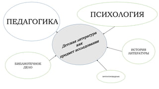 Документ обсуждает современные тенденции в детской литературе России, включая новые книги и авторов, а также основные жанры и требования к детским изданиям. Отмечается влияние современных родителей и культурные изменения на содержание произведений, а также наличие новых издательств и конкурсов. Рассматриваются различные подходы к написанию книг для детей, включая интерактивные и визуальные элементы.