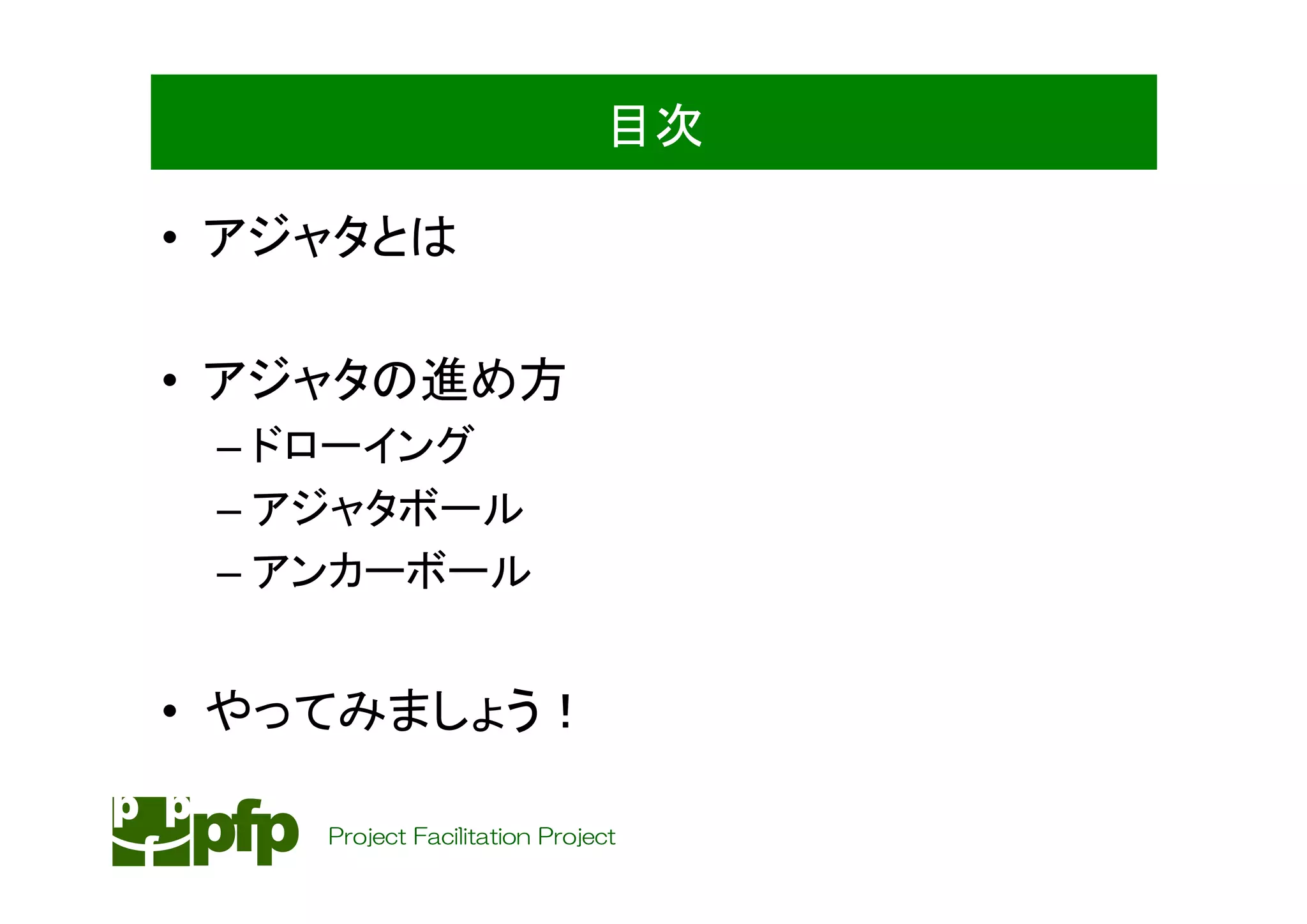 アジャタの進め方 Project Facilitation Project