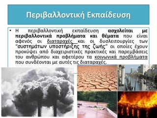 • Ηπεριβαλλοντική εκπαίδευση ασχολείται με