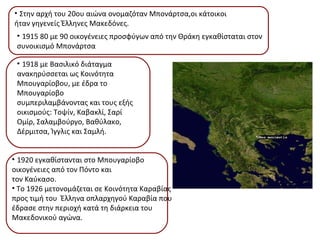 Στην αρχή του20ου αιώνα ονομαζόταν Μπονάρτσα,οι κάτοικοι ήταν γηγενείς Έλληνες Μακεδόνες. 1915 80 με 90 οικογένειες προσφύγων από την Θράκη εγκαθίσταται στον συνοικισμό Μπονάρτσα 1918 με Βασιλικό διάταγμα ανακηρύσσεται ως Κοινότητα Μπουγαρίοβου, με έδρα το Μπουγαρίοβο συμπεριλαμβάνοντας και τους εξής οικισμούς: Τοψίν, Καβακλί, Σαρί Ομίρ, Σαλαμβούργο, Βαθύλακο, Δέρμιτσα, Ίγγλις και Σαμλή. 1920 εγκαθίστανται στο Μπουγαρίοβο οικογένειες από τον Πόντο και τον Καύκασο. Το 1926 μετονομάζεται σε Κοινότητα Καραβίας προς τιμή του Έλληνα οπλαρχηγού Καραβία που έδρασε στην περιοχή κατά τη διάρκεια του Μακεδονικού αγώνα.