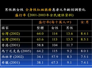 Furthermore, SLE affects women compared with men by a ratio of 9:1.1