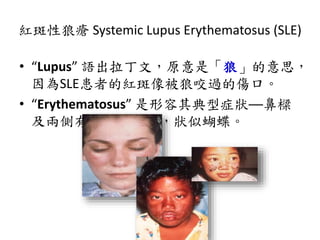 這份文檔介紹了紅斑性狼瘡的治療方法及案例,包括使用類固醇和其他免疫調節藥物的有效性和副作用,並探討了生物製劑的潛力。患者對於自身病情的了解和規則服藥對於長期控制病情也至關重要。文檔還強調了治療計劃應根據病患的具體情況進行調整。