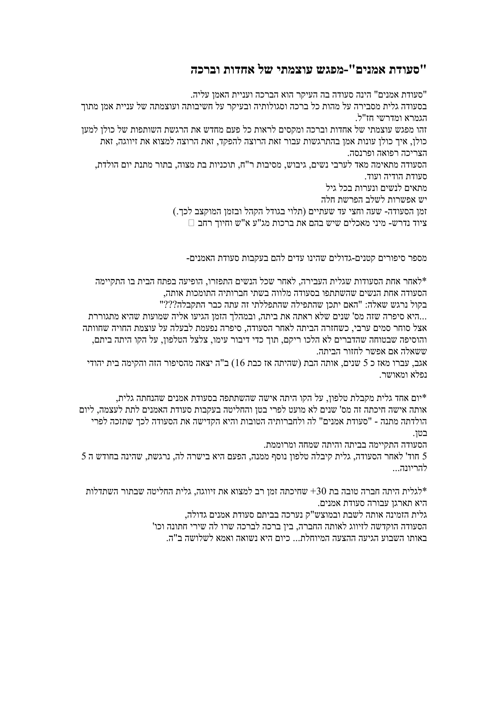 וברכה אחדות שלעוצמתי אמנים"-מפגש "סעודת
