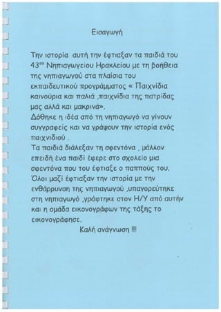 43ο Νηπιαγωγείο Ηρακλείου Νηπιαγωγοί: Μαρία Παναγιώτου, Ελένη Μπινυχάκη, Ελευθερία Μαραυγάκη