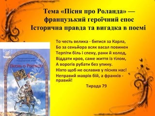 6. В основу«Пісні про Роланда» покладено історію про похід Карла Великого