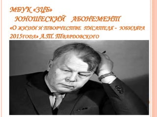 А. Т. Твардовский, родившийся в 1910 году, был выдающимся советским поэтом и военным корреспондентом, который начал писать стихи с детства. Его наиболее известное произведение, поэма «Василий Теркин», отражает исторические судьбы народа, а его редакторская деятельность в журнале «Новый мир» поддерживала многие таланты. Твардовский получил различные премии, включая Сталинскую и Государственную, и умер в 1971 году, оставив значительное наследие в русской литературе.