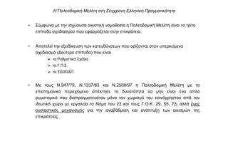 • Με τους Ν.947/79, Ν.1337/83 και Ν.2508/97 η Πολεοδοµική Μελέτη µε το