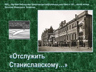 Документ посвящен 140-летию русского актера Василия Ивановича Качалова, народного артиста СССР, который сыграл 55 ролей на сцене МХАТа. Качалов обладал исключительным сценическим обаянием и своим искусством смог раскрывать глубину внутреннего конфликта персонажей. В итоге он оставил значительный след в театральном искусстве, получив признание как за свои роли, так и за личные качества.