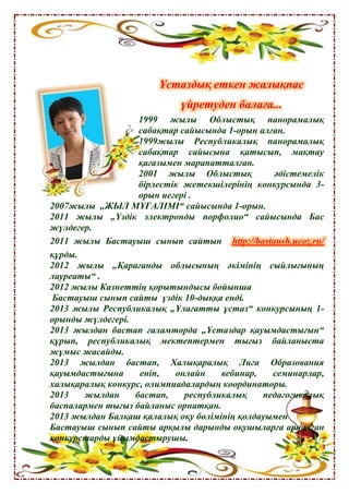 2007жылы „ЖЫЛ МҰҒАЛІМІ“ сайысында 1-орын.
