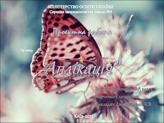" На уроці технологій вчителька запропонувала нам зробити проектну роботу - я обрала аплікацію... " У презентації надається коротка історія винекнення аплікації, та поетапно розповідається про мою роботу над проектом.