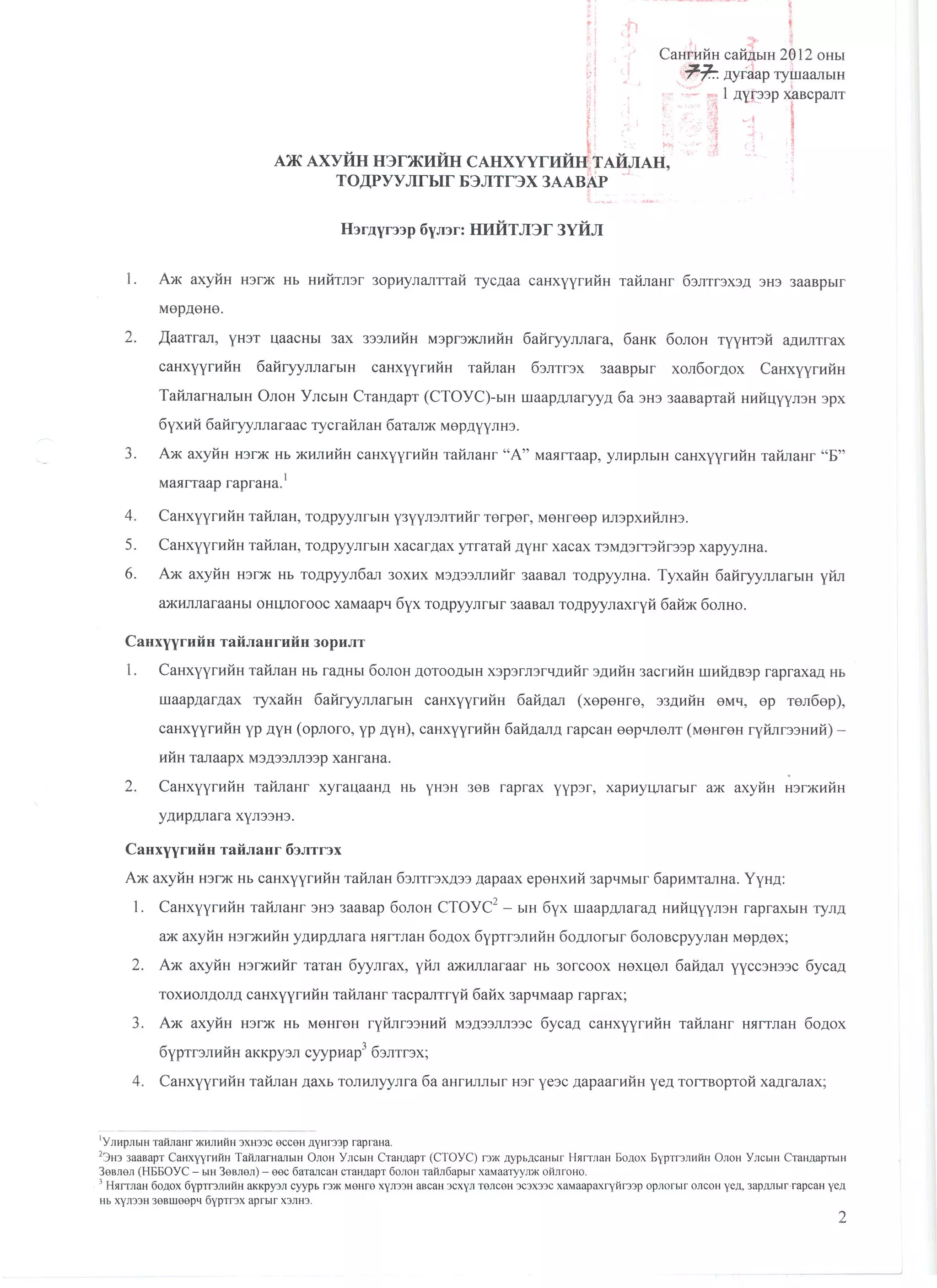 санхүүгийн тайлангийн маягт