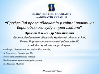 адвокат, Представник адвокатів Харківської області в РАУ,