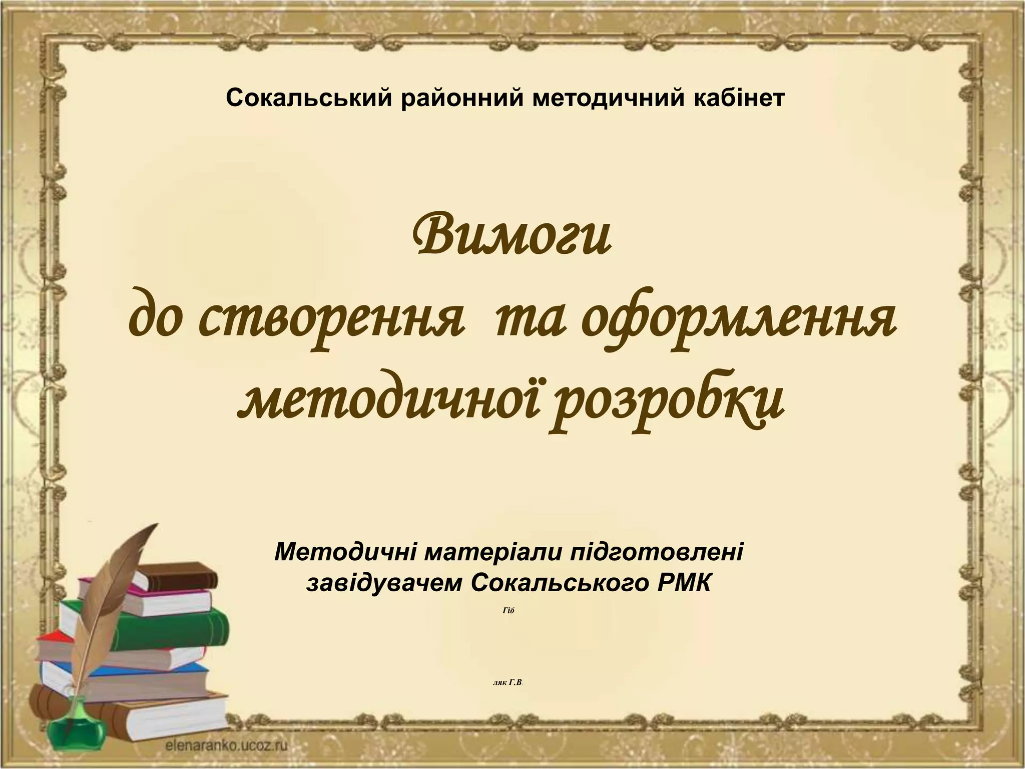 розробки (методисту РМК); рецензії на методичні розробки (не