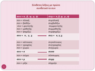 συν + π, β, φ, μ, ψ συμ + π, β, φ, μ , ψ