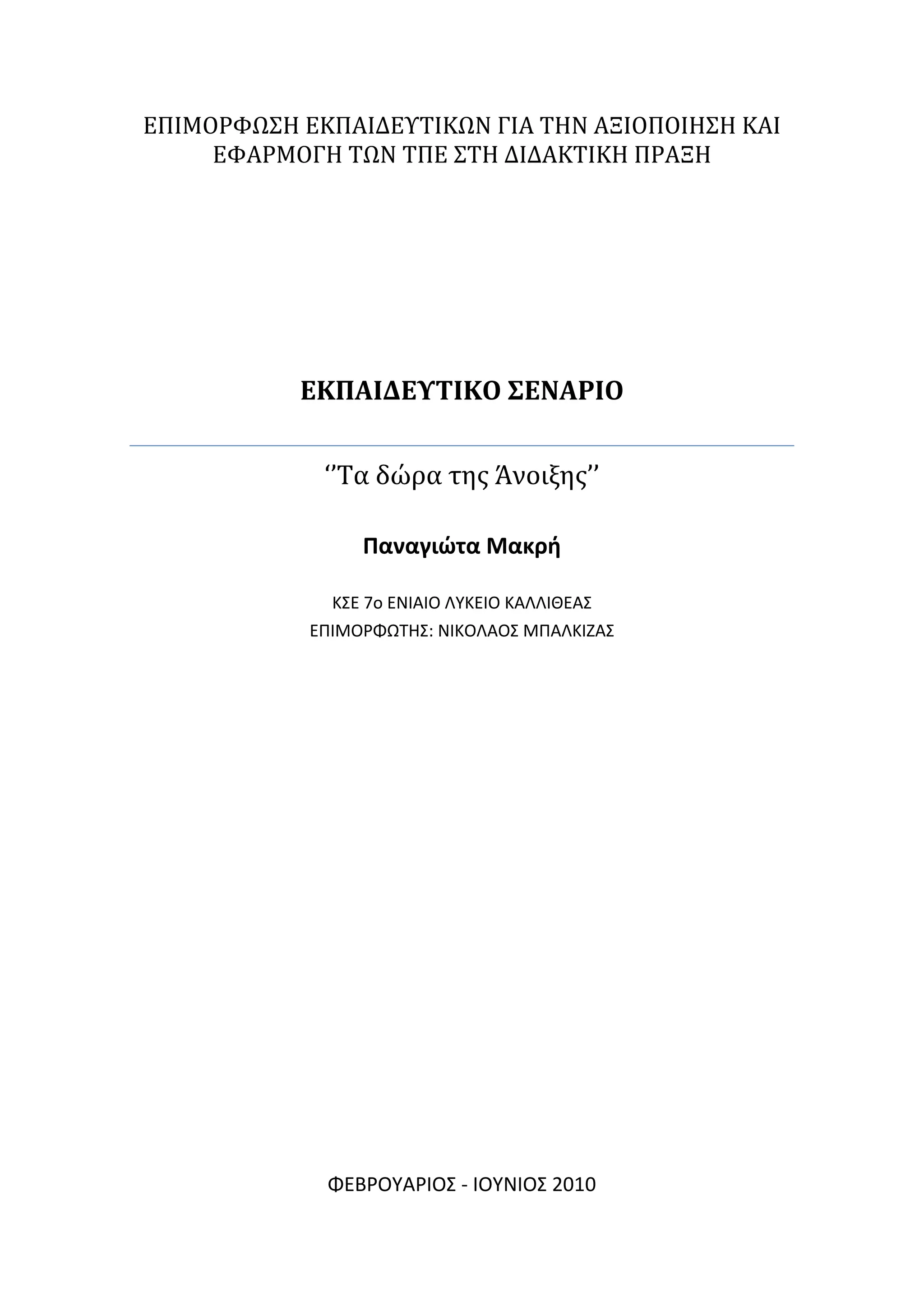 ΕΚΠΑΙΔΕΥΤΙΚΟ ΣΕΝΑΡΙΟ