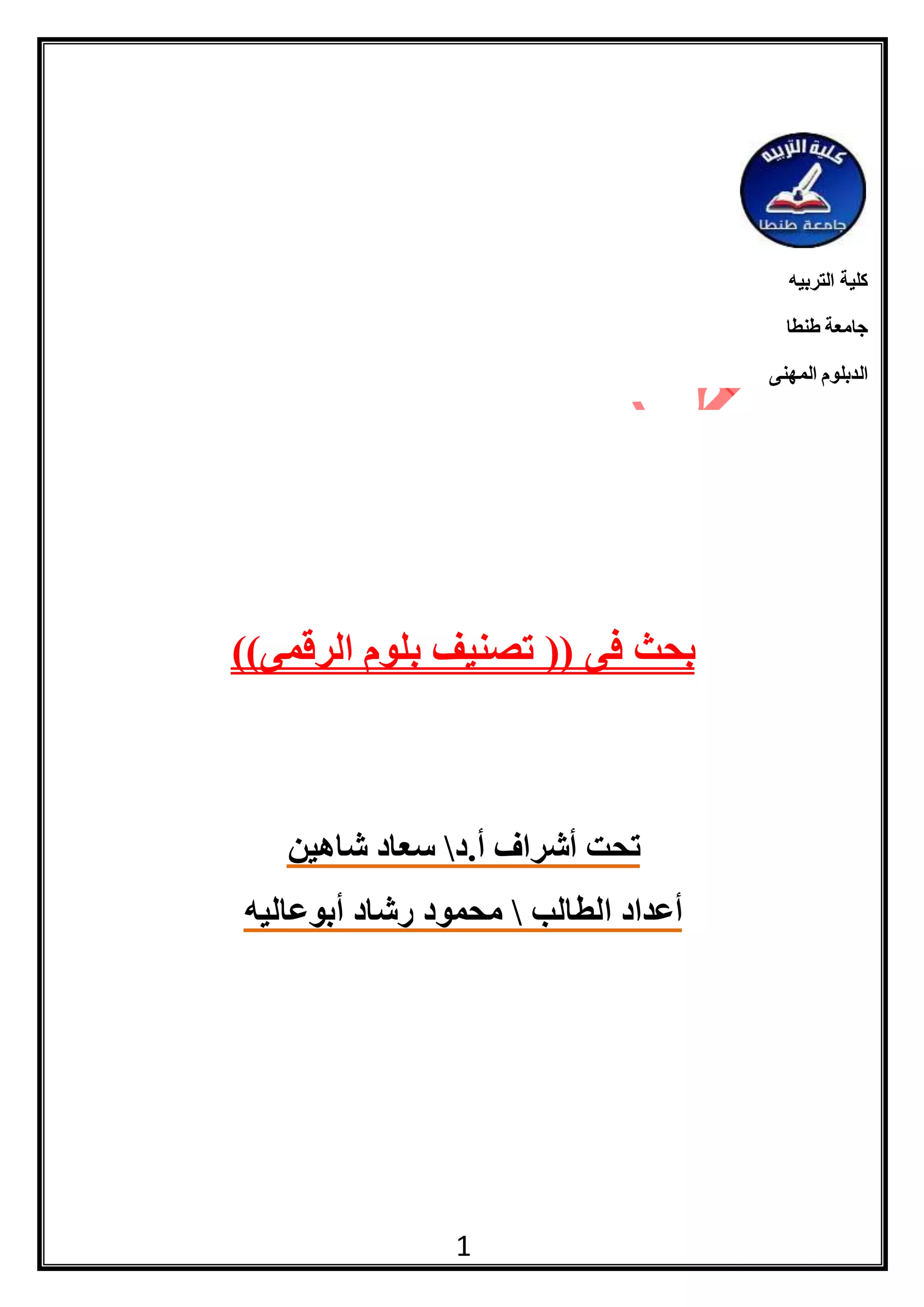 يستعرض الوثيقة نظام تصنيف بلوم الذي أُنشئ لتطوير الأهداف التعليمية وتقييم سلوكيات التعلم. يركز على ثلاثة مجالات رئيسية: المعرفي، العاطفي، والحركي، حيث يسعى لتحسين قدرة الطلاب على التفكير والتحليل. يعتبر تصنيف بلوم أداة هامة في التخطيط التعليمي وتحديد الأهداف الأكاديمية.