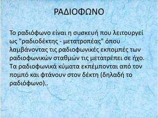 To ραδιόφωνο είναιη συσκευή που λειτουργεί