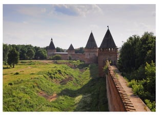 Документ охватывает культурное наследие средневековой Руси, включая последствия татаро-монгольского ига и летописание различных регионов, таких как Новгород и Псков. Также упоминаются важные литературные памятники и архитектурные сооружения, включая Московский Кремль и Смоленскую крепость. Обсуждаются потенциальные источники происхождения названия 'Белый город' и описание его ворот и стен.