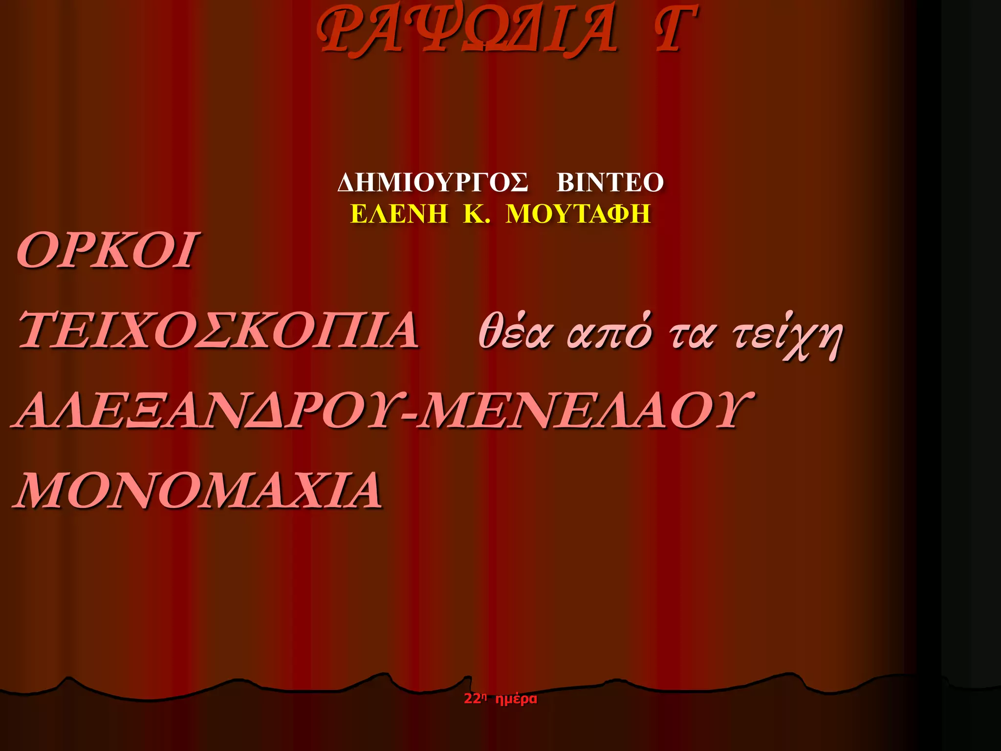 απ’ όλες ωραιότερη τες κόρες του Πριάμου. 22η ημέρα