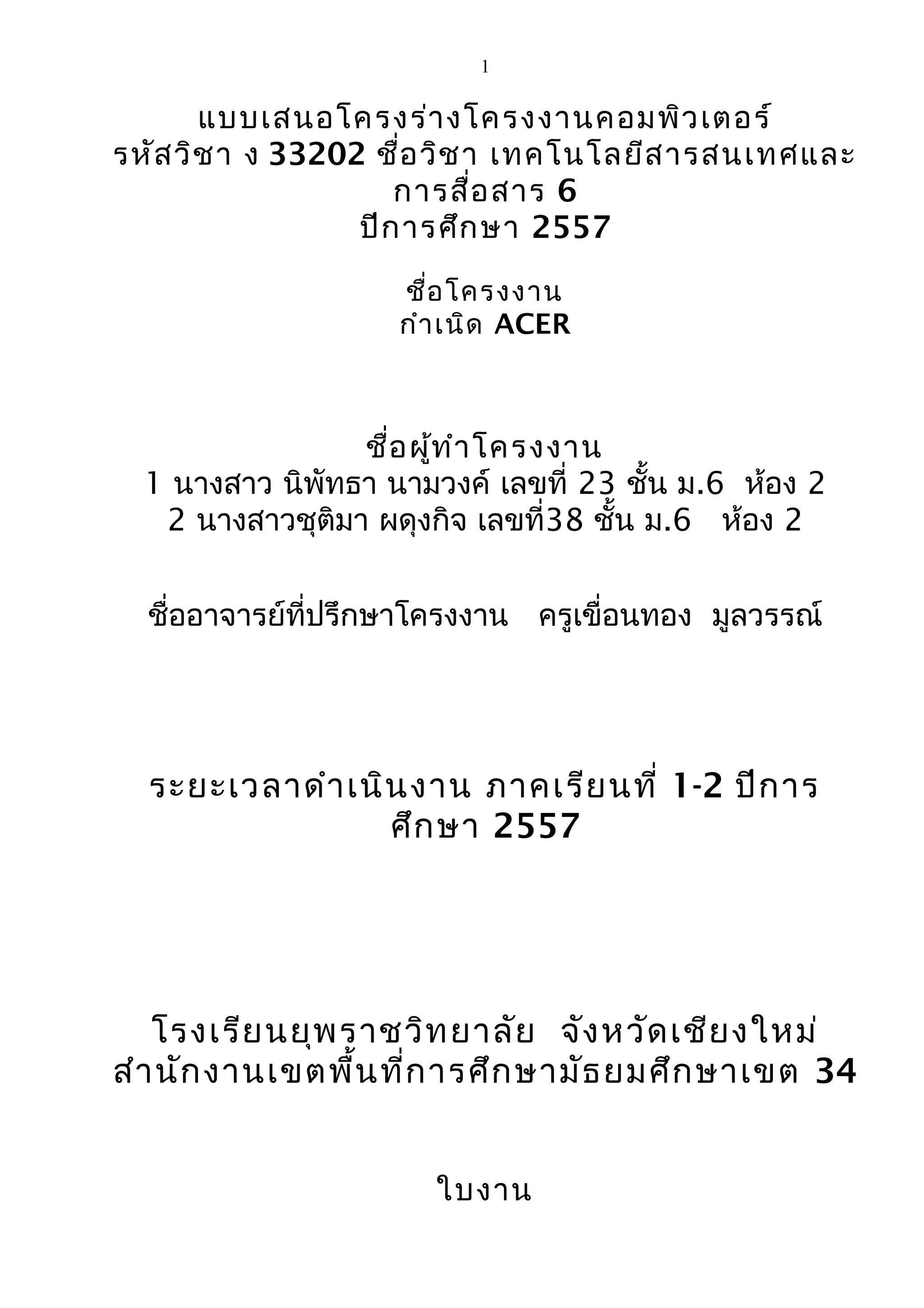 โครงร่างโครงงานคอมพิวเตอร์ PDF