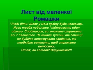"Любідіти! Шлях у мою країну буде нелегким.
