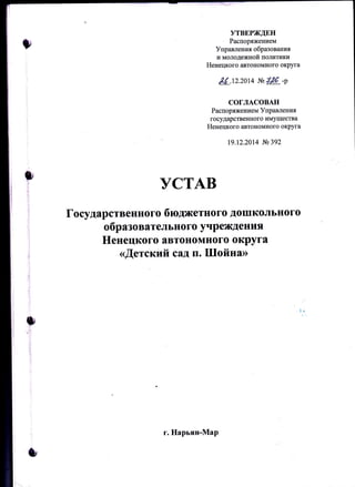 Документ описывает функциональные характеристики и организационную структуру государственного бюджетного дошкольного образовательного учреждения Ненецкого автономного округа, включая цели и задачи учреждения. Основное внимание уделяется образовательной деятельности, правилам приема воспитанников, а также условиям для их развития и охраны здоровья. Учреждение выступает как некоммерческая организация, нацеленная на качественное дошкольное образование и поддержку семей.