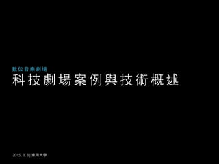 本文探讨了数字音乐剧场中使用的多种科技,包括增强现实、投影映射和全息投影等技术,展示了它们在实际场景中的应用示例。文档列出了与著名活动和展览相关的案例,强调科技与艺术之间的结合。它提供了丰富的案例,展示了数字艺术表现形式的演变与创新。