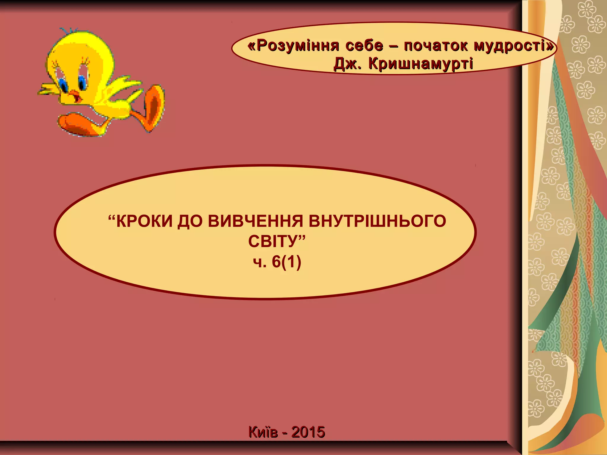 “КРОКИ ДО ВИВЧЕННЯ ВНУТРІШНЬОГО