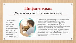 Документ рассматривает инфантилизм как социально-правовое явление, указывая на его проявления в поведении и психике взрослых, сохраняющих детские черты. Начинаются обсуждения причин инфантилизма, включая влияние гиперопеки и недостатка ответственности, а также его связь с изменениями в восприятии взрослой жизни в обществе. Также упоминается задержка вступления в взрослую жизнь и изменения в возрасте брака и финансовой независимости у молодых людей.