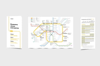 Документ описывает улучшение дизайна городской электрички и метро, включая детали о схемах и их версиях. Упоминается, что альфа-версия принимает во внимание 146,000 человек на Facebook и 40,000 на Medium. Также сообщается о предстоящем бета-релизе схемы.