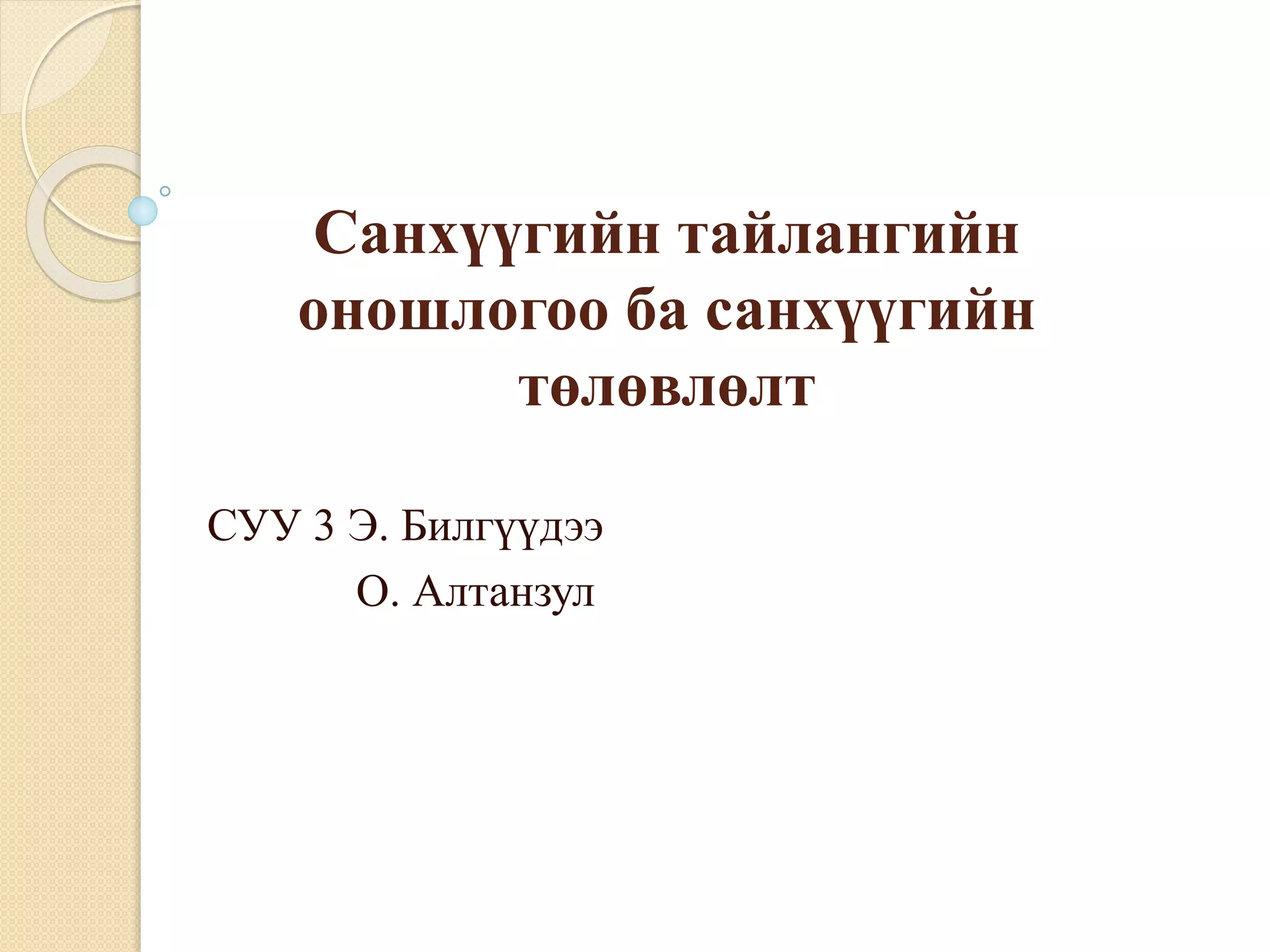 Lekts 6 sanhuugiin togtwortoi baidal PPT