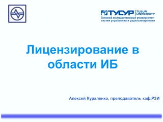 Документ описывает лицензирование в области информационной безопасности согласно федеральному закону от 4 мая 2011 г. n 99-фз, охватывающий требования к лицензиям на определенные виды деятельности, включая шифрование и защиту информации. Также указаны виды деятельности, требующие лицензирования, и условия, необходимые для получения лицензий от ФСТЭК и ФСБ, включая квалификационные требования к персоналу и необходимую документацию. Лицензирование проводится для обеспечения безопасности и защиты конфиденциальной информации, с основной целью предотвращения несанкционированного доступа к ней.