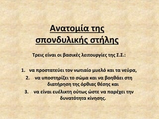 1. να προστατεύει τον νωτιαίο μυελό και τα νεύρα,