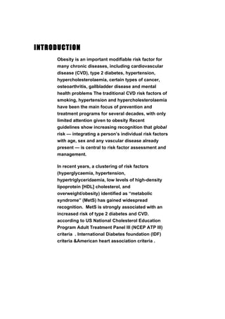 The document discusses metabolic syndrome, which is a cluster of conditions that increases the risk of heart disease and diabetes. It occurs when someone has 3 or more risk factors such as high blood pressure, low HDL cholesterol, and pre-diabetes or diabetes. Short bursts of high-intensity exercise may be more effective at improving metabolic syndrome risk factors than longer periods of moderate exercise, though more research is still needed.