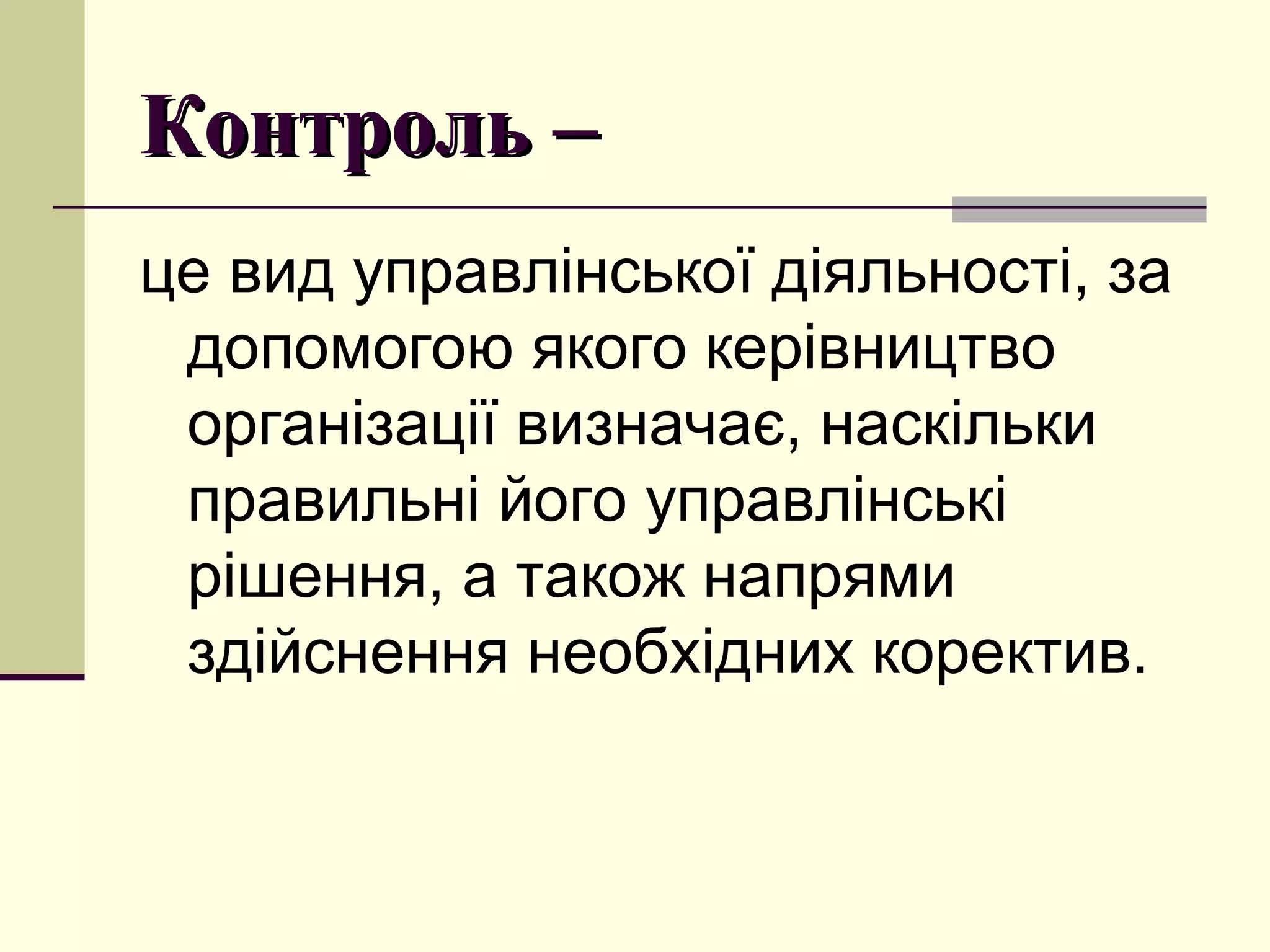 Мета контролюМета контролю– сприяння тому, щоб фактичні