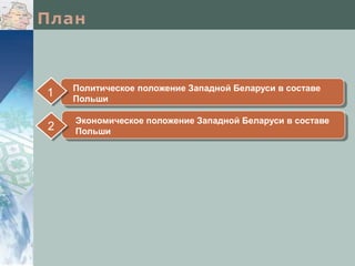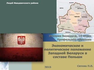 Документ описывает политическое и экономическое положение Западной Беларуси в составе Польши после Рижского договора 1921 года, когда к Польше отошли определенные территории с преимущественно белорусским населением. Западная Беларусь была аграрным придатком, страдала от безработицы и феодальных пережитков, в то время как польские власти не признавали ее как отдельный регион и активно использовали иностранный капитал. Местное население, в основном занятое сельским хозяйством, сталкивалось с налоговым давлением и экономическими трудностями, что вынуждало многих искать работу за границей.