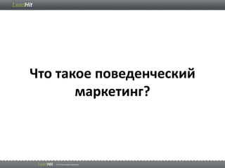 Документ описывает поведенческий маркетинг и предлагает решения для увеличения продаж через сервис онлайн-маркетинга 'leadhit'. В нем представлены случаи успешного внедрения, которые показывают значительное увеличение транзакций и конверсии благодаря использованию инструментов, таких как смарт-офферы и триггерные авторассылки. Приведенные примеры демонстрируют высокие уровни вовлеченности потребителей и эффективность методов сбора контактных данных.