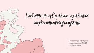 Які бувають маркетингові дослідження. Що таке глибинне інтерв'ю, його задачі, етапи проведення, переваги застосування.