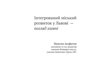 Доповідь представлена в рамках Другої української академії інтегрованого розвитку міст, що відбулась 20-21 жовтня 2014р. в м. Чернівці.