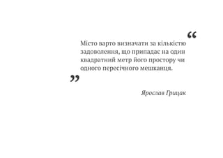 За думкою історика Ярослава Грицака, місто варто визначати за кількістю задоволення, що припадає на один квадратний метр його простору чи одного пересічного мешканця. У доповіді подана спроба осмислити, чому у громадському просторі Львова задоволення часто обмежується, та з якими викликами стикається місто у процесі свого розвитку.