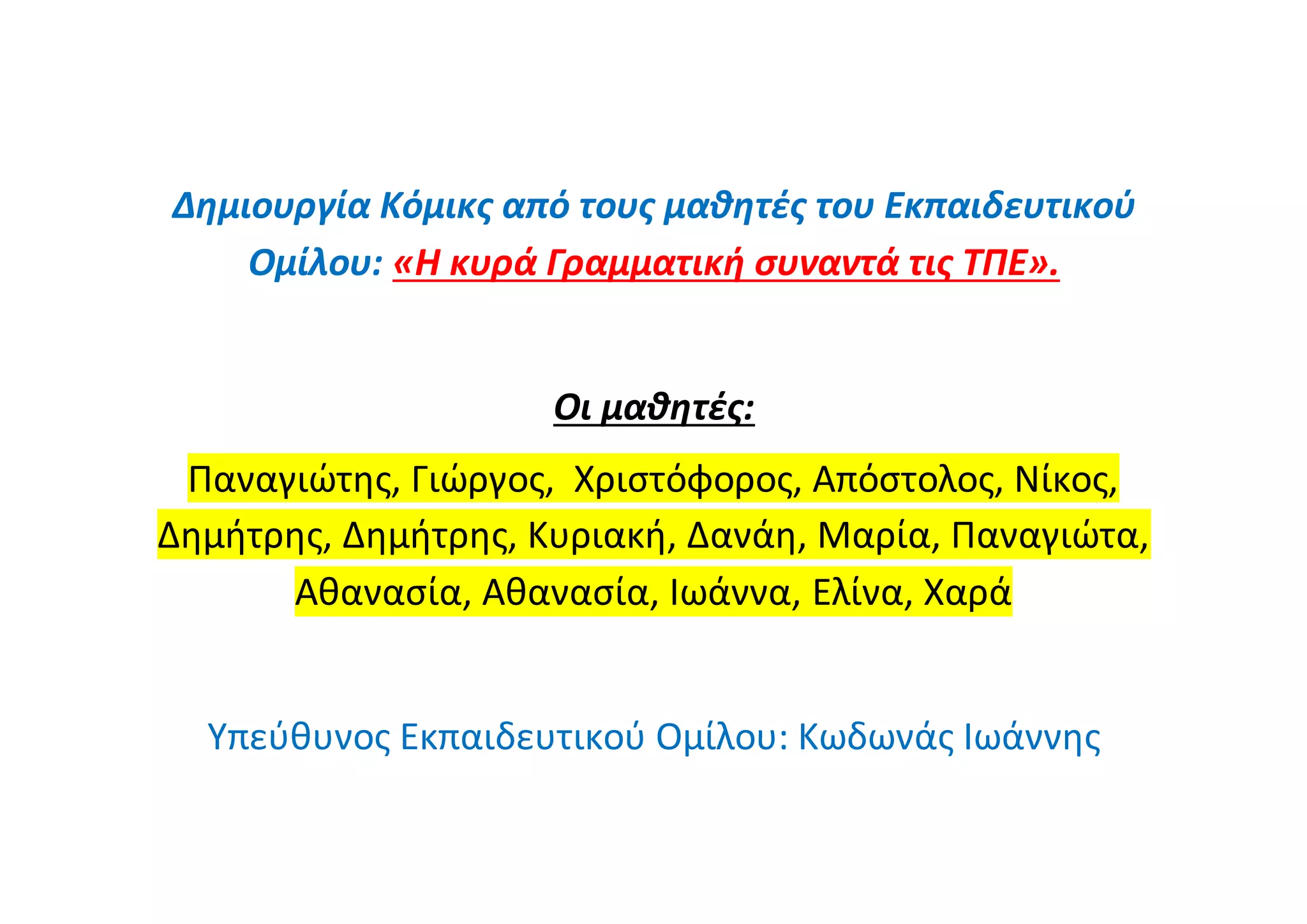 Δημιουργία Κόμικς από τους μαθητές του Εκπαιδευτικού Ομίλου: «Η κυρά Γραμματική συναντά τις ΤΠΕ»